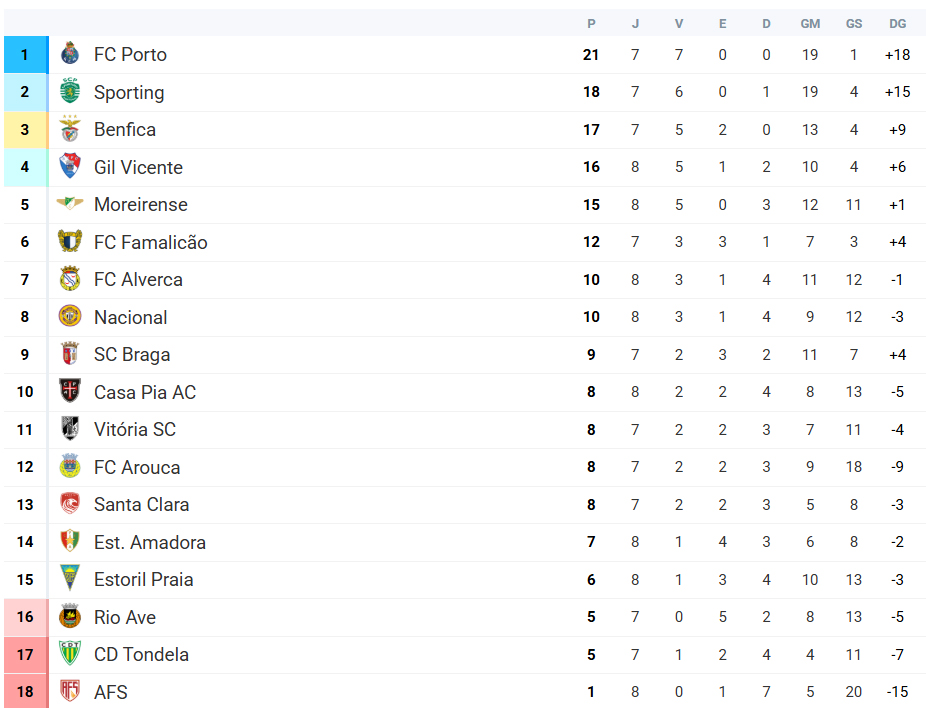 Com este resultado a AVS SAD mantem um ponto em oito jogos realizados e está em último lugar.