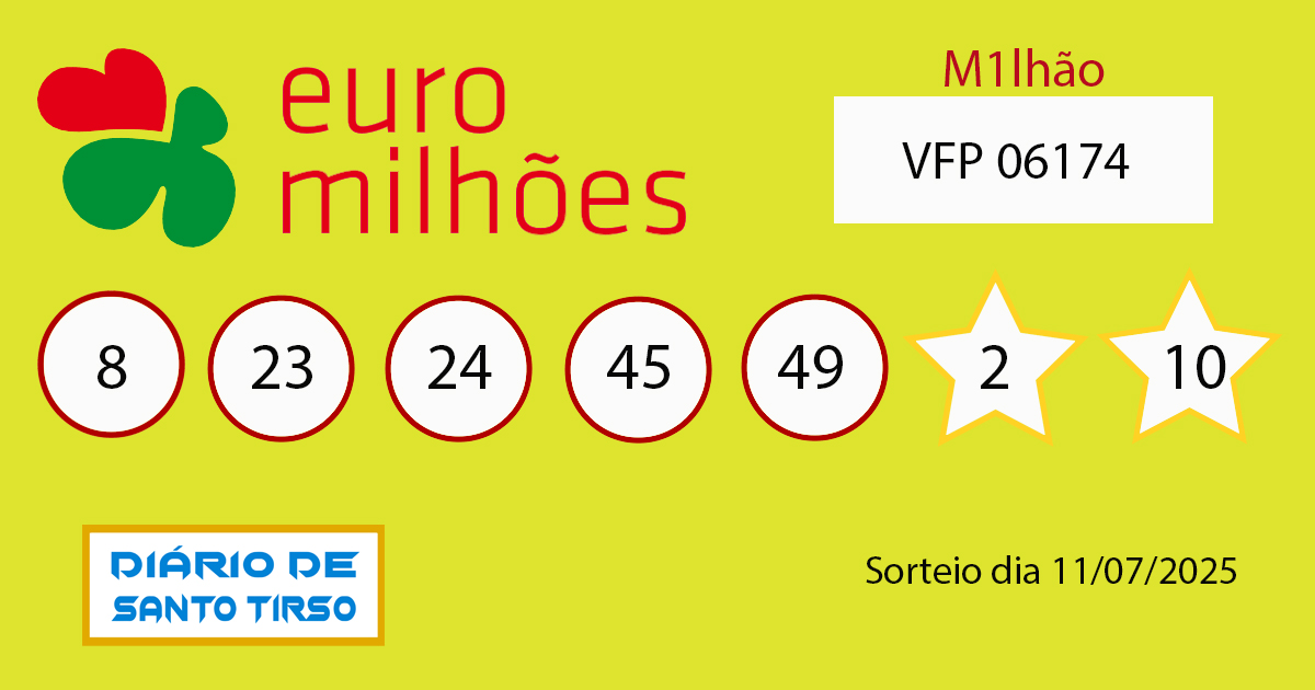 Chave Euromilhões dia 11/07/2025