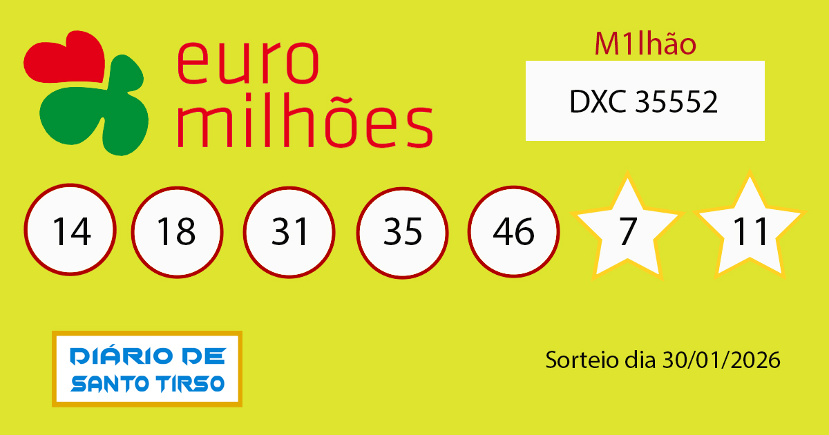 Chave Euromilhões dia 30/01/2026
