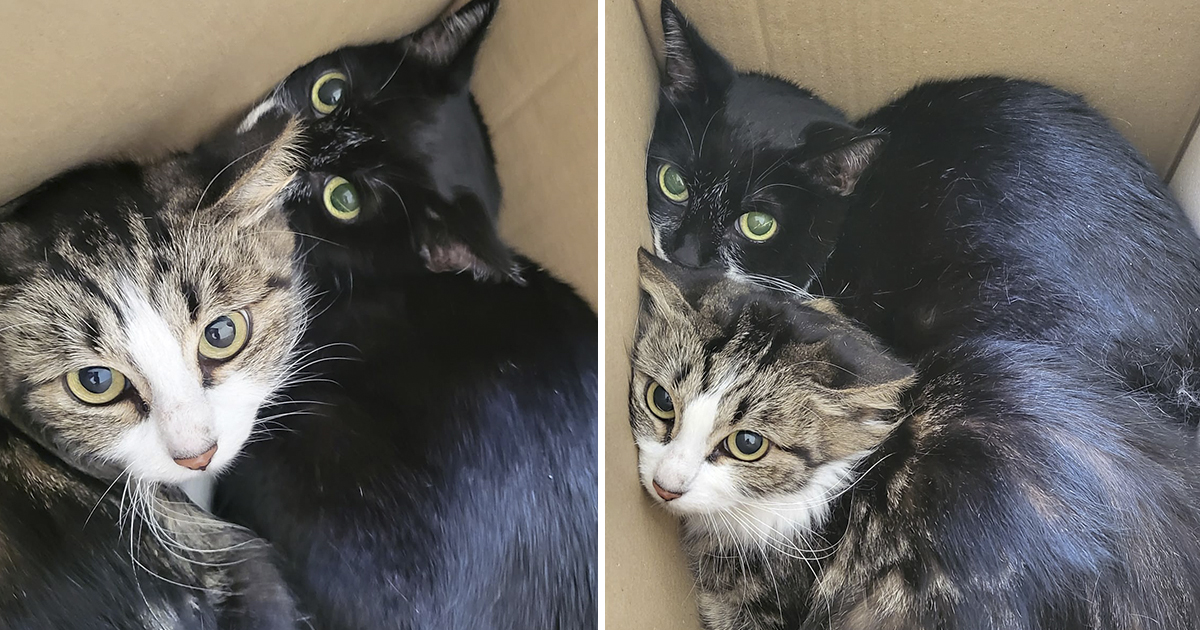 São duas gatas adultas e foram deixadas fechadas dentro de uma caixa. Estavam assustadas quando foram recolhidas.
