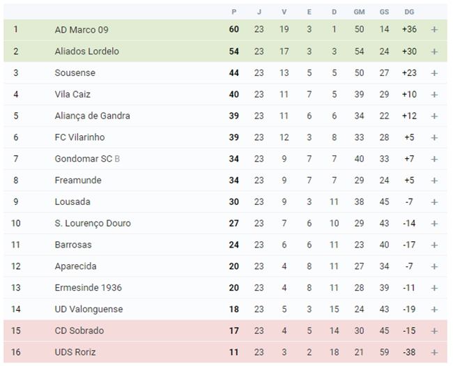 Com este resultado e vitória, a formação Vilarinhense soma 39 pontos conquistados, fruto de 12 vitórias, 3 empates e 8 derrotas e ocupa a 6°Posição da tabela Classificativa, a 5 pontos do terceiro classificado, Sousense. Na próxima Jornada, deslocação a Valongo, para defrontar o Valonguense.